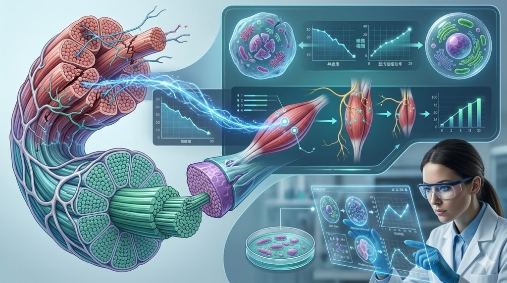 細胞の物理的環境(電気伝導性とエネルギー代謝)を整えることで、進行の抑制にとどまらない機能向上が確認されています。