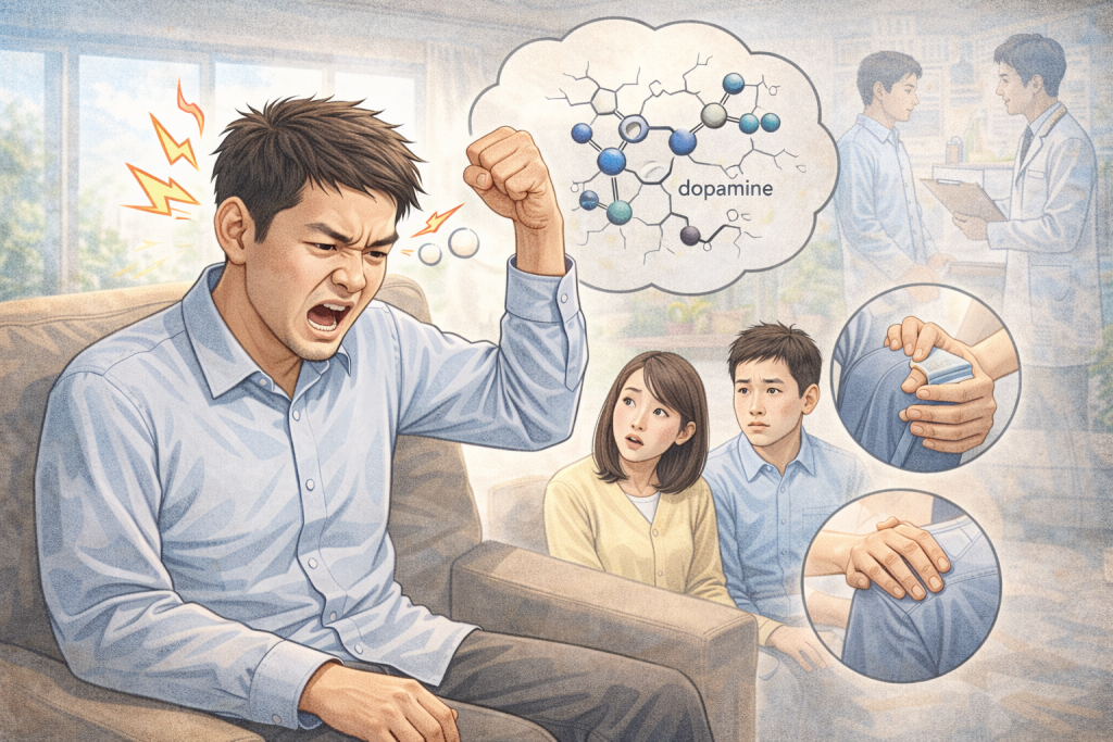 パーキンソン病情報 いら立ち 家族の接し方 パーキンソン病で怒りっぽくなるのはなぜ?家族が知りたい接し方 パーキンソン病では、動きの症状だけでなく、気分や感情の変化が生活に大きく影響することがあります。 その中で、「前より怒りっぽくなった」「...