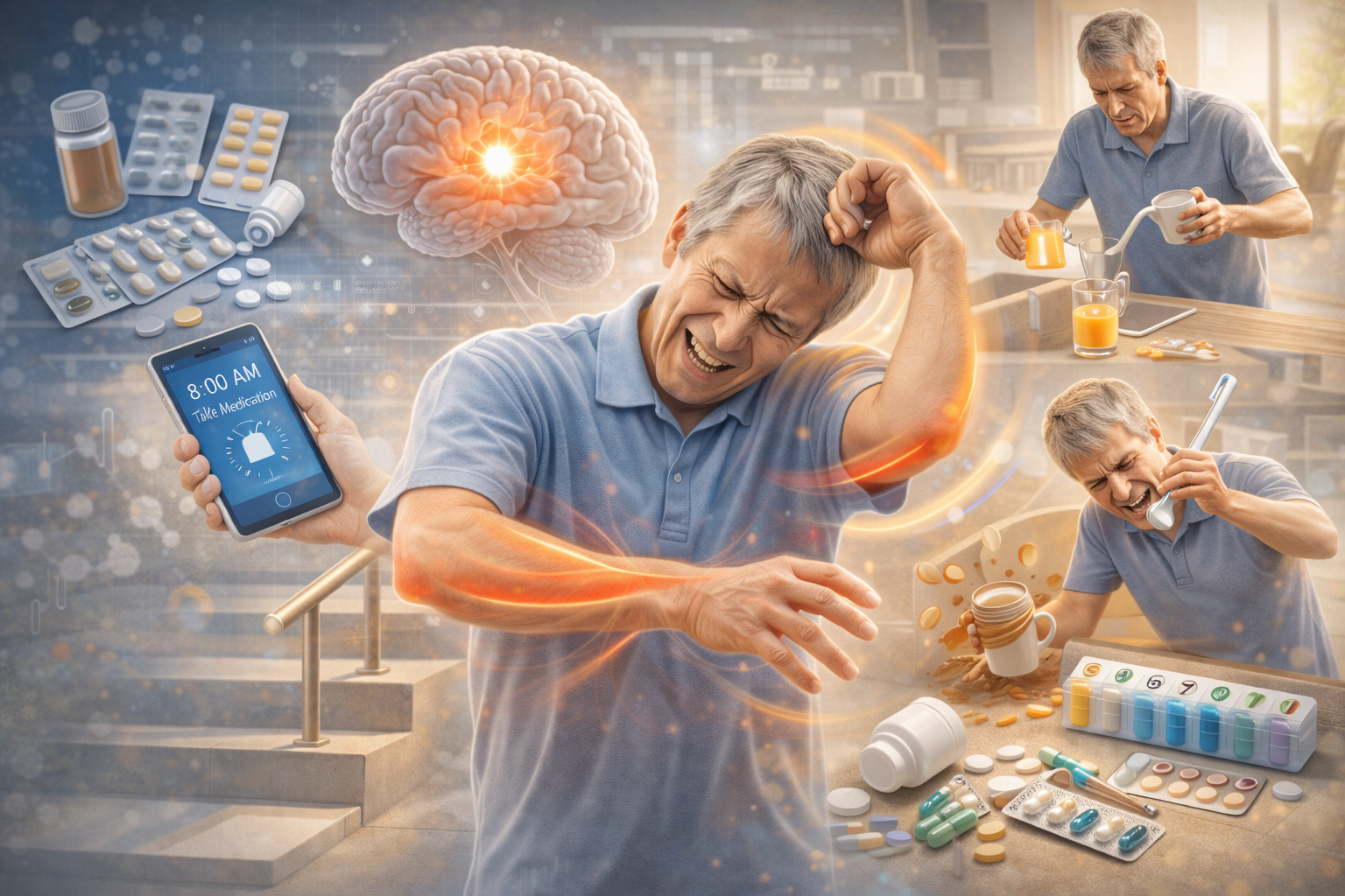 パーキンソン病の管理を続ける中で、体が勝手に揺れる、くねる、落ち着かない、座っていても動いてしまうといった動きが気になってくることがあります。 こうした動きはジスキネジアとして整理されることがあり、ご本人にとっては「よく動けている」とは別のつらさになることがあります。 このページでは、ジスキネジアとは何か、どんな場面で負担になりやすいか、お薬や日常動作との関係をどう整理すると相談しやすいかをまとめます。