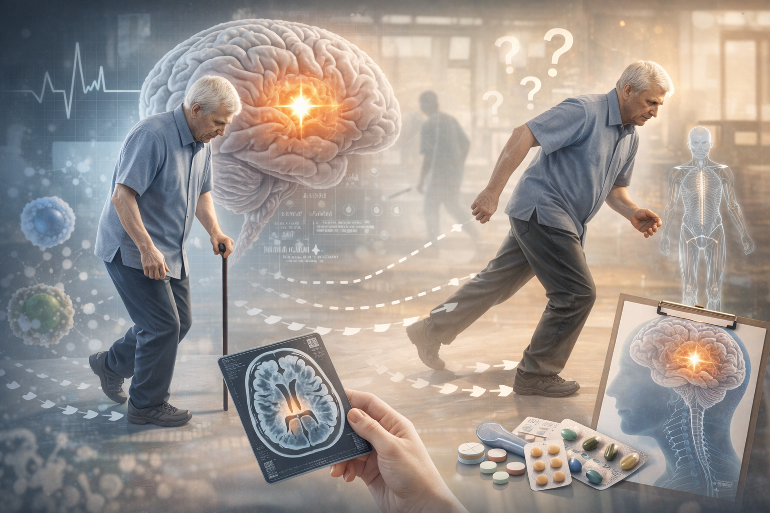 パーキンソン病では、動作の幅が小さくなる現象(Hypokinesia)や、動作の遅さ、姿勢への反応低下、方向転換や運動の切り替えの難しさが重なって歩行が崩れやすくなります。