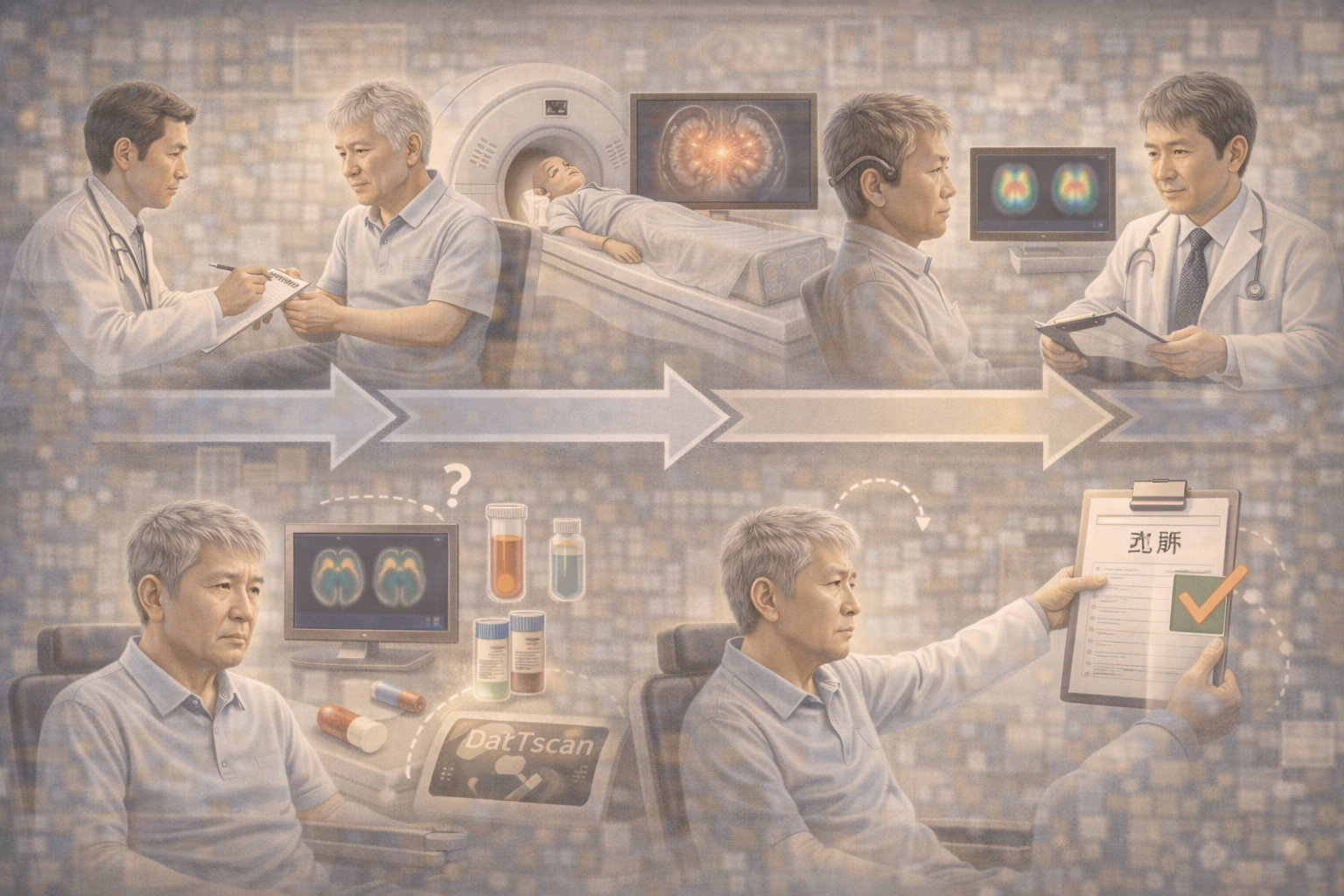 | 3. 必要に応じた検査 | 採血、MRI、CT、DaTscan などで他の原因を整理する |